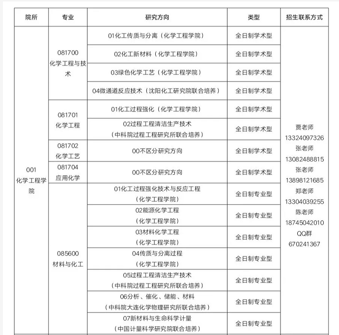 依据2021年第一志愿报考我院研究生的成绩情况,目前我院(包括与中科院所联培研究生)在化学工程与技术、化学工程、化学工艺专业(学术型硕士)、材料与化工(专业硕士)仍有部分调剂名额,现面向全社会接收调剂。