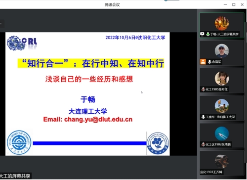 于畅教授是我校优秀校友,1997年考入沈阳化工大学化工工艺专业,2001年在我校攻读硕士学位,2004年考入大连理工大学化学工艺专业攻读博士学位,2008年留在大连理工大学任教。现任大连理工大学化工学院教授、博士生导师,教育部长江学者奖励计划特聘教授,受聘2017年教育部青年长江学者,获2017全球化工学者论坛杰出青年奖,入选“兴辽英才计划”青年拔尖人才计划,获2019大连市高层次人才创新支持计划--大连市杰出青年科技人才等荣誉和表彰。