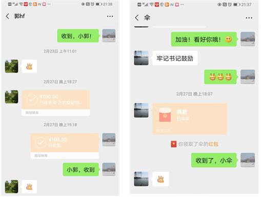 ② 一个党员就是一面旗帜,支部党员伞晓广在地方挂职的同时,兼挑研究生课程,疫情期间关心学生思想状态,鼓励学生合理利用时间,深入思考研究课题,构思研究方案。