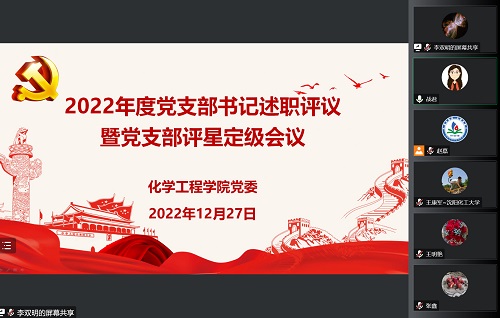 12月27日18点30分,伟德国际1946源于英国党委在线上召开2022年度党支部书记述职评议暨党支部评星定级会议。党委委员、领导班子、各党支部书记、教师代表参加会议,会议由学院党委书记战君书记主持。