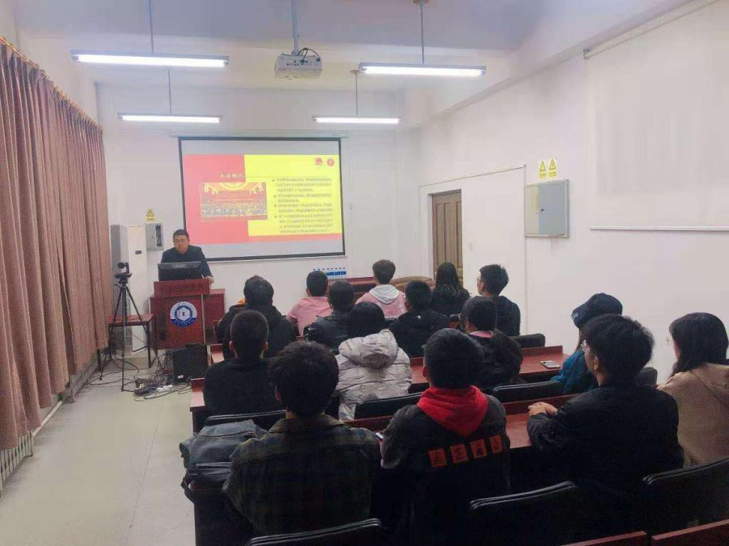 为深入贯彻落实习近平总书记关于青年工作的重要思想,高扬理想主义,厚植国家情怀,分团委书记王博老师开展学习全国学联二十七大精神专题研讨会,会议中,王博老师向各位团干部传达了中华全国学生联合会第二十七次代表大会上习近平总书记贺言和党中央致辞精神,并就贺言和致辞精神与各位团干部进行认真研讨和交流,旨在通过提高团干部的思想觉悟来带动更多的学生积极参与活动之中,会议期间各位同学们踊跃发言,一同体悟习近平总书记的贺言和党中央致辞精神的温度。