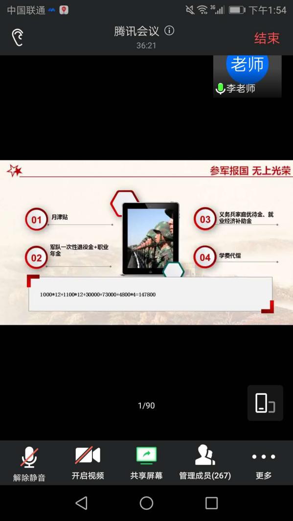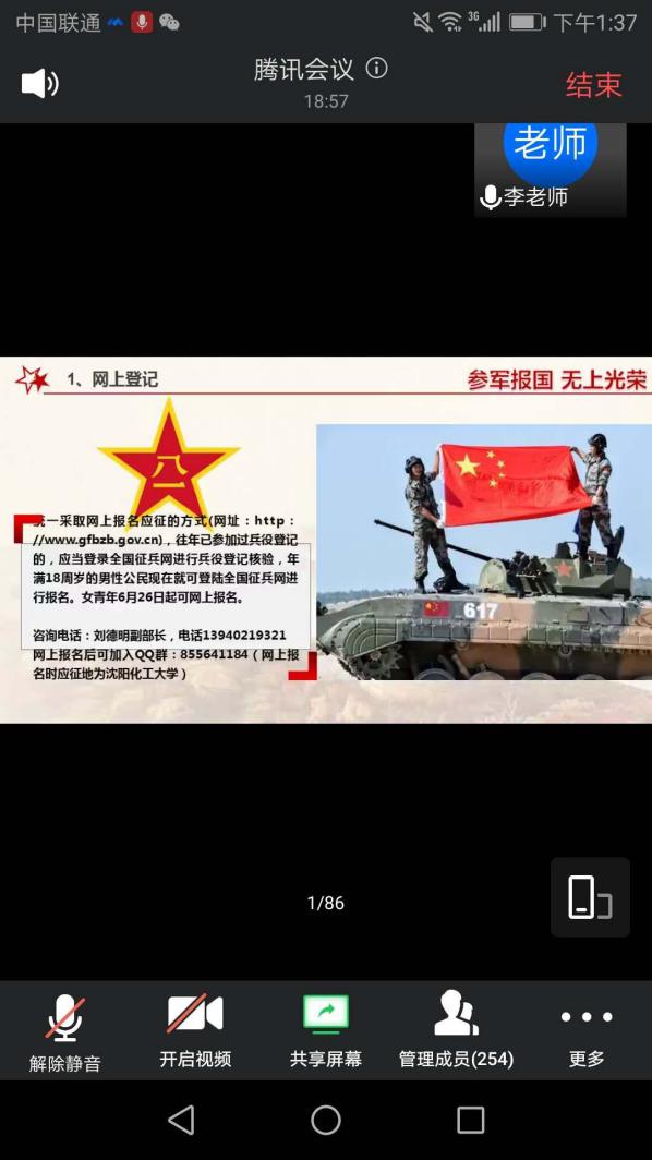 为了动员2019级伟德国际1946源于英国的学生们积极入伍,王博老师邀请到武装部李丙文老师为全体同学对于2020年征兵政策进行详细的解读。会议采取线上腾讯会议的形式,由王博老师和李丙文老师主持,伟德国际1946源于英国共267名同学参加。