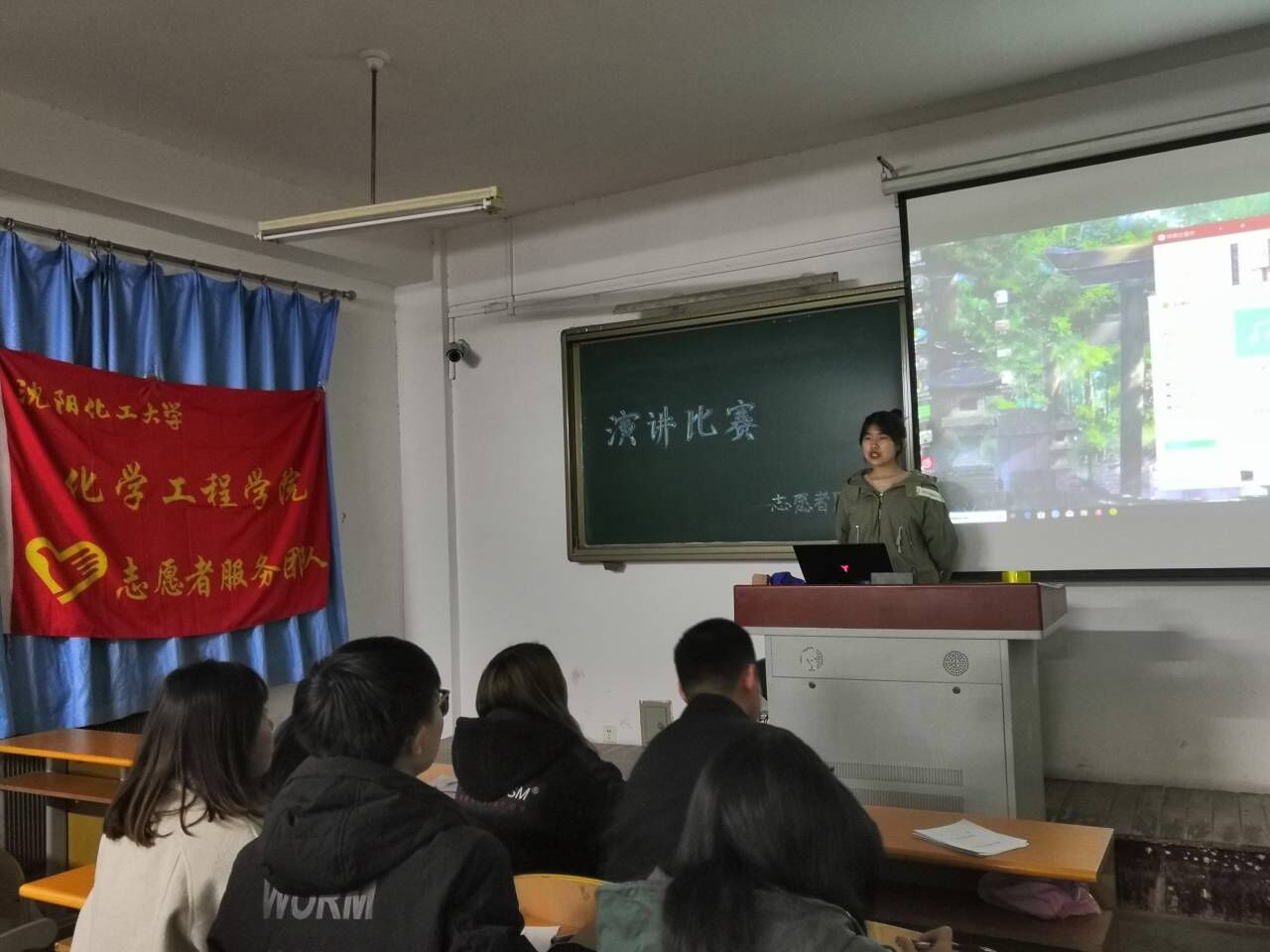 每一名参赛同学都很认真对待这次的演讲,这不仅是代表个人的一场比赛,更是代表我们沈阳化工大学的一场竞赛。演讲比赛更侧重于自身对所演讲题目的了解程度以及对他人的感染力的程度,让我们在收获知识的同时又能得到自身价值的绽放。参赛选手一一上台演讲,他们声情并茂的演讲也使得评委同学为之拍手称快。当然也有不足之处,我们的志愿者评委同学也及时为他们纠正错误,为的是同学们在正式比赛时能发挥出自己最自信最优秀的一面。