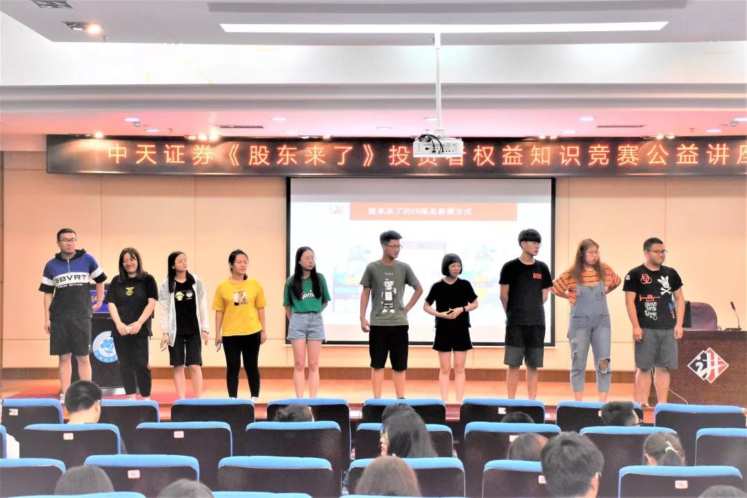 为庆祝新中国成立70周年,进一步落实中国证监会党委关于资本市场人民性的要求和保护投资者合法权益的职责,2019年6月12日下午1点半,中天证券走进伟德国际1946源于英国,在图书馆五楼学术报告厅开展《股东来了》投资者权益知识竞赛公益讲座。