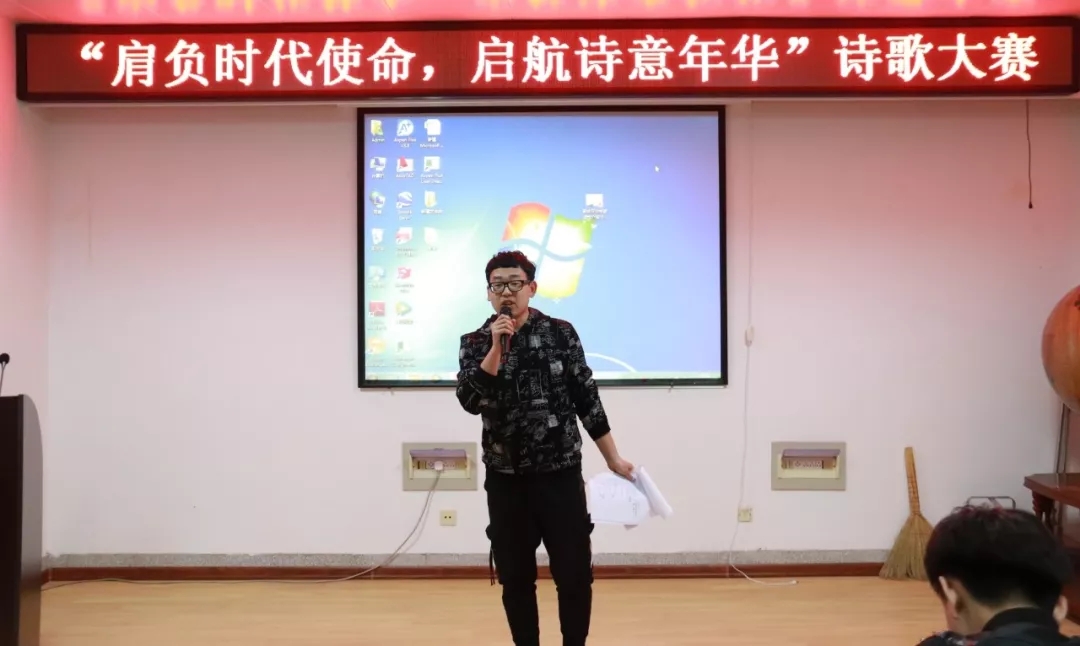 马广同学对每一个参赛班级都进行了详细的点评,并指出了各班存在的问题。优创1801班的《如果我的心灵还很年轻》创意独特,但写作技巧稍有欠缺,适当的改变句式或许会更好。能源1803班的《传五四精神 你与我同行》中的一些用词需要进一步的推敲。同时他也指出,诗歌并不需要每一句都压在韵脚上,合理的安排可能会让诗歌变得更好。
