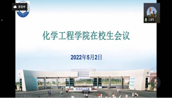 紧接着,王康军院长高度肯定了每一位在校生在防疫期间所表现出的大局观念和担当精神,希望大家能够充分理解和认真遵循国家和校院的防疫要求,针对实验安全开展、学校防疫细则落实、校园生活有序进行再做强调,特别强调学生要与导师之间反复确定方案在安全可行下进行,杜绝对摸不准、校不清、辨不明的实验盲目进行。希望大家保持积极乐观心态,有序进行在校学习生活,如有问题和需求及时向学院提出。