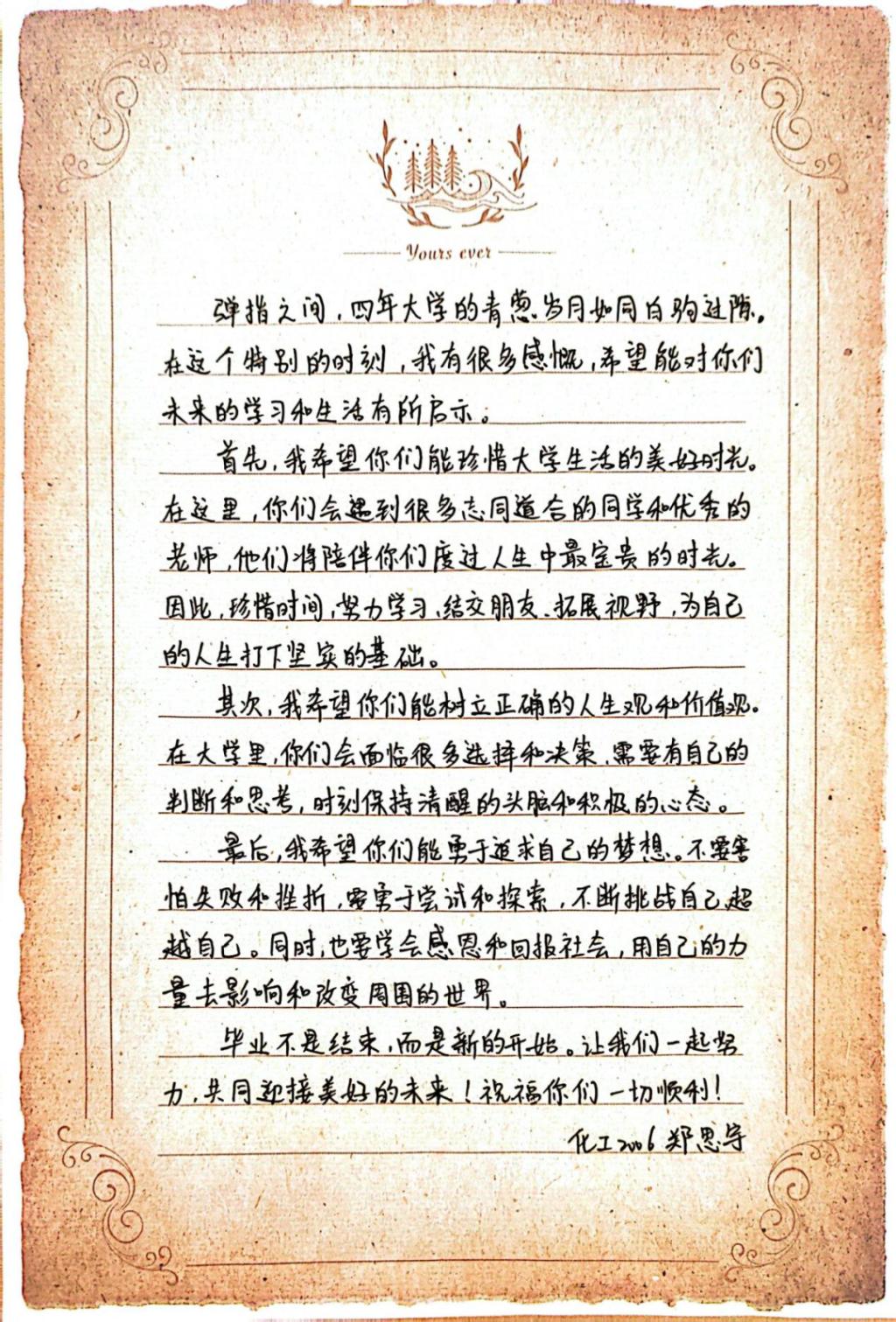 弹指之间,四年大学的青葱岁月如同白驹过隙。在这个特别的时刻,我有很多感慨,希望能对你们未来的学习和生活有所启示。
