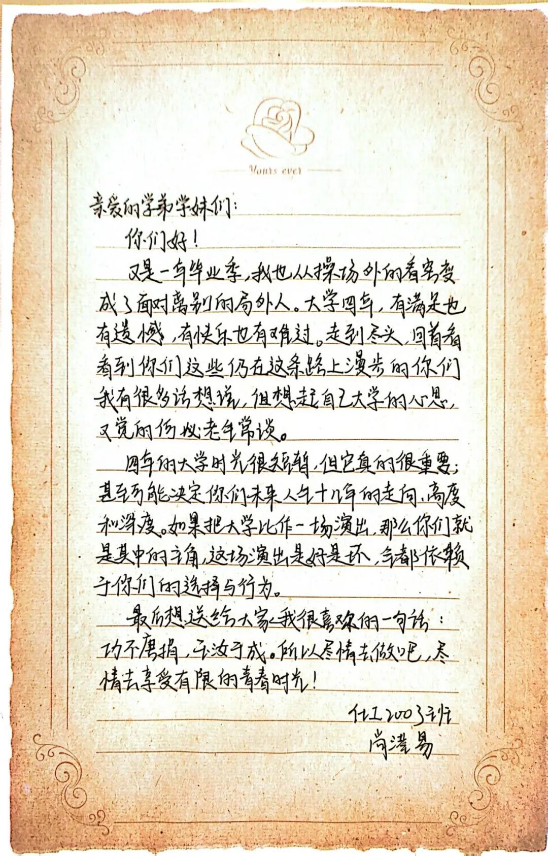 山河远阔,满眼星河;青春梦想,扬帆远航。纸短情长,继续传承,伟德国际1946源于英国2024届毕业学子用一封信的形式发来了他们的深情寄语......