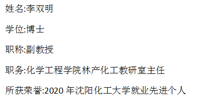 李双明,男,博士,副教授,硕士研究生导师,于2010年到沈阳化工大学工作,现为伟德国际1946源于英国林产化工教研室主任。自工作以来,爱岗敬业,尽职尽责,严于律己,多年来始终奋斗在教学科研第一线,认真履行教书育人、服务育人的神圣职责。李双明同志非常关注关心学生就业问题,以下是该同志在就业上为学生做的工作总结。