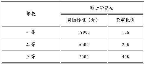 第六条 研究生学业奖学金的等级、标准及比例设定如下: