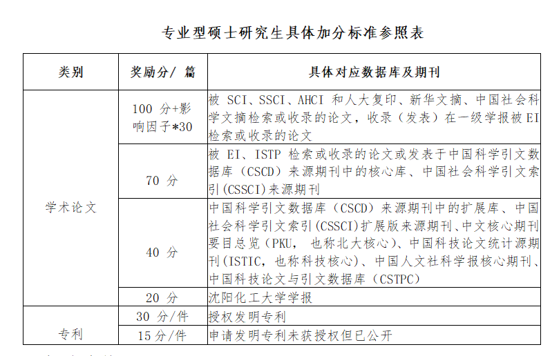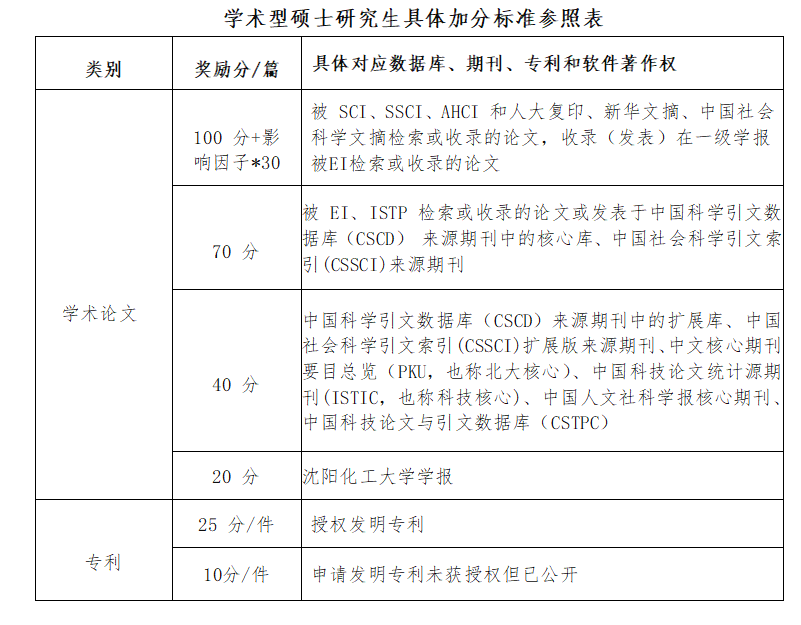 (3)各项科研成果以“沈阳化工大学”为第一署名单位;若第一署名单位为联合培养院所,第二单位为“沈阳化工大学”,那么论文第一作者给予适当加分(正常计算得分的30%)。