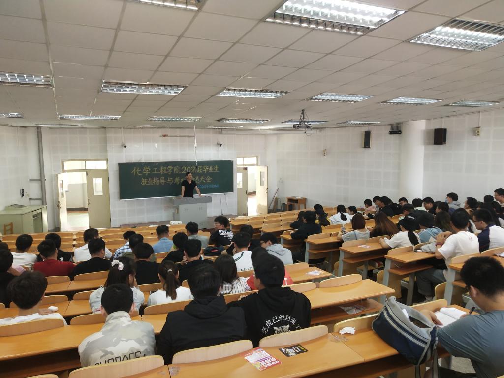 会上,余海军书记首先详细介绍了我院2020届毕业生的考研升学情况,结合当前考研政策和我院学生实际情况分析了今年的考研形势,建议同学们要注重方法,加强专业课的复习;在注意复习历年专业课真题的同时,也要注意全面扎实掌握专业课各项知识点,防范专业课命题出现重大变化;要在复习中扬长避短,结合自身实际,强长项补弱项;要保持良好的心态和健康的身体,做好一切考研准备;并鼓励同学们要以时不我待、只争朝夕的奋斗精神,和坚持不懈、奋力向前的顽强意志,走好考研路上的每一步,交出一份让家长、老师满意,让自己无悔的答卷。接着,余海军书记从就业的层面介绍了我校去年的就业情况,接着对化工行业的就业形势进行了分析,解读了近年来各地方政府的就业政策,并鼓励同学们做好职业规划和择业就业心理的准备,引导同学们树立正确的择业观与就业观,积极做好就业准备。